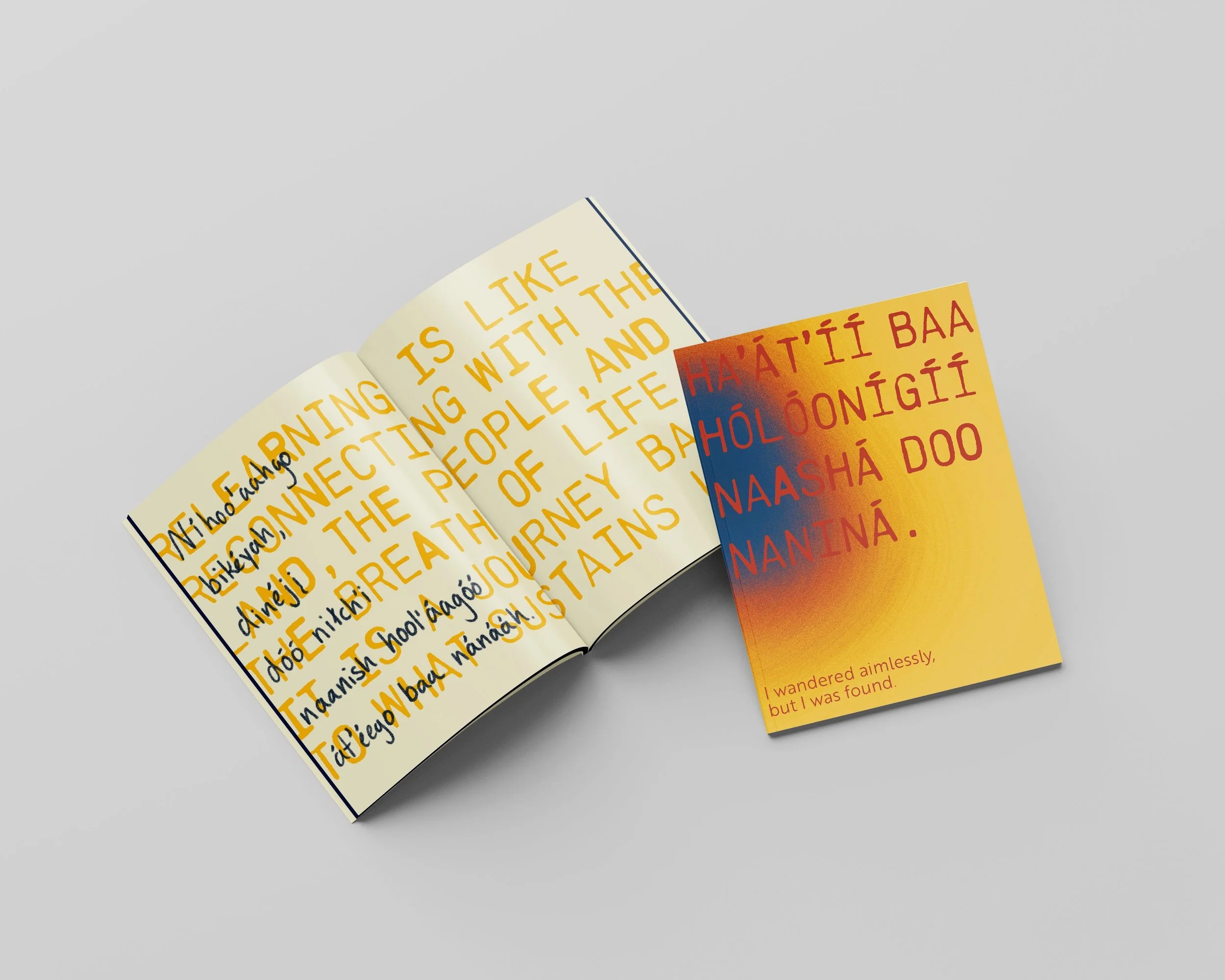 Cultures are the many things that can shape someone’s life. Traditions and memories are held close. When it comes to some cultures, they are fading within families as generations come and never learn, they become lost. One culture significantly ties personally, the Navajo culture. Growing up outside the reservation and knowing little to no knowledge of traditions, arts, or language. “I wandered aimlessly, but I was found” is a timeline of nostalgia of past memories, disconnection and fear of what the future holds, and rekindling that connection so that the future isn’t so gray for the relationship of the Navajo Culture. The book is written in both the English language and the Navajo language.